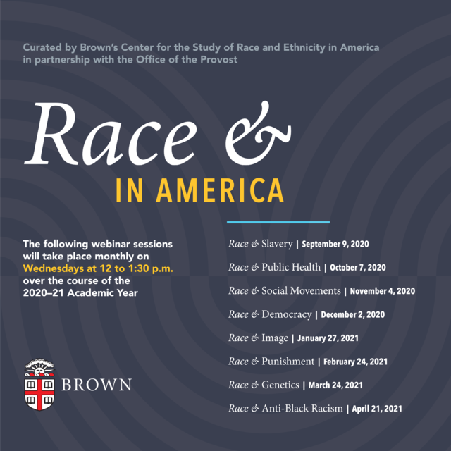 Over the course of the 2020–22 academic years, the Center for the Study of Race and Ethnicity in America at Brown, in partnership with the Office of the Provost, undertook a systematic investigation of the enduring contemporary effects of anti-Black racism in America. Drawing on the expertise of Brown scholars from a range of fields and perspectives, a series of thirteen webinars generated critical engagements with society’s most fundamental and urgent questions around race. The Race & in America series amplifies the impact and extends the reach of these penetrating discussions through expanded content and resources presented over thirteen volumes.